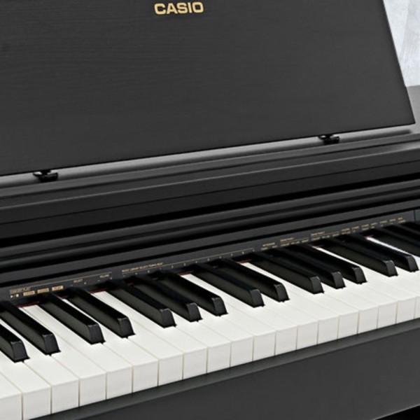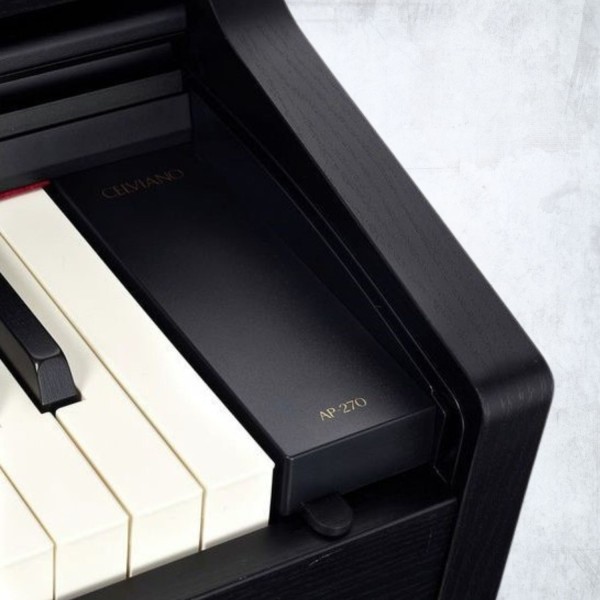 CASIO AP-270 is a digital piano designed to replicate the feel of an acoustic piano, while remaining simple and accessible. It features a Tri-Sensor Scaled Hammer Action II mechanism with escapement simulation and ivory and ebony imitation key surfaces, offering a precise and progressive touch that is suitable for both beginners and more advanced players.