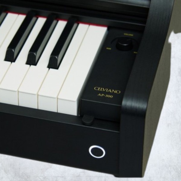 CASIO CELVIANO AP-300 is a digital piano designed to offer a playing experience close to that of an acoustic piano, while remaining easy to use on a daily basis. It features a full 88-key keyboard with Smart Scaled Hammer Action, offering a heavy, progressive touch that responds naturally to playing dynamics, making it an instrument suitable for both study and regular practice.