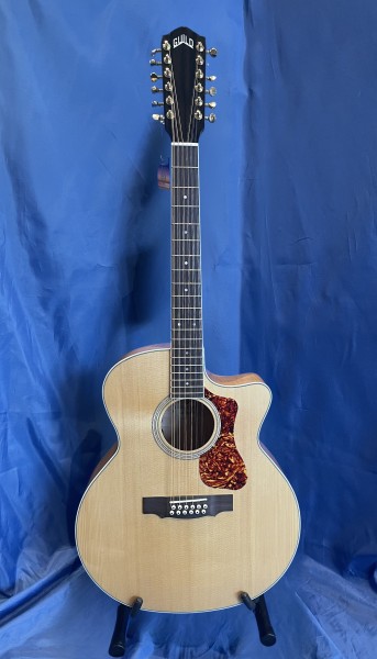This F-2512CE is equipped with a Fishman GT-1 preamp with volume and tone controls, allowing for faithful amplification of the natural 12-string sound. Carefully crafted details such as the mother-of-pearl rosette, the Guild logo on the headstock, the fingerboard and bridge connected by binding, and the vintage open-back tuners ensure an elegant and durable finish. It is a versatile 12-string guitar, ideal for musicians seeking an instrument that is powerful, precise, and visually striking.