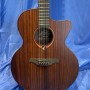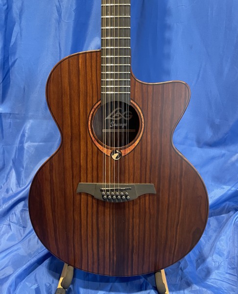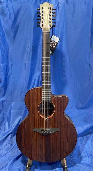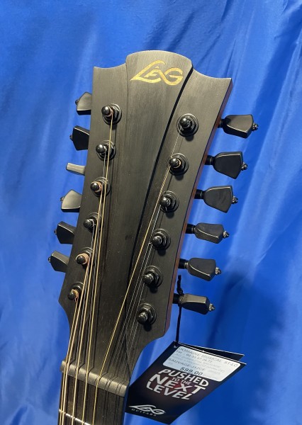 Lag Sauvage J12CE is a jumbo-sized 12-string guitar with a cutaway, designed with environmental responsibility in mind. It is one of the French brand's first “Green Guitars” and stands out for its use of sustainable materials such as Pale BrankoWood for the solid top (developed to reproduce the acoustic qualities of spruce), Black BrankoWood for the fingerboard and bridge, and smoked eucalyptus for the arched back and sides, presented in a raw finish that limits the use of varnish.