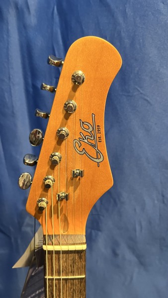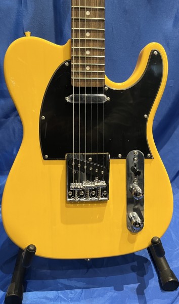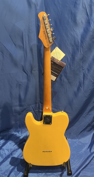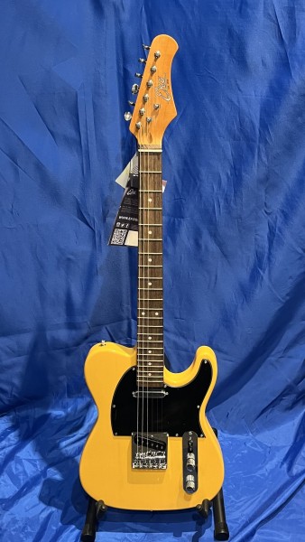 Eko TL-400 Butterscotch est une guitare électrique neuve de la série Tribute 400, inspirée des lignes Tele. Son corps en paulownia, associé à un manche en érable au profil low C et une touche en résine WPC, offre un confort immédiat et une bonne réactivité sur les 22 frettes du diapason de 25,5″.