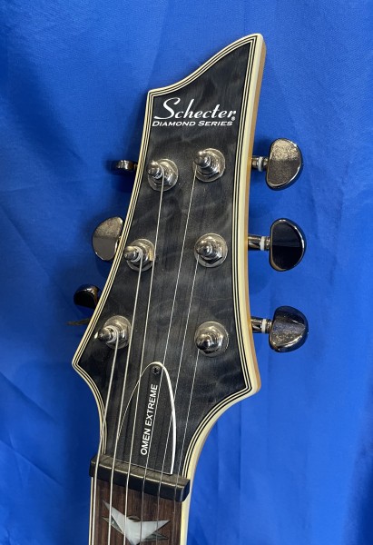 Schecter Omen Extreme-6 See-Thru Black est une guitare électrique solid body conçue pour le hard rock et le metal. Son corps en acajou avec table en érable flammé offre un son puissant, des médiums riches et une projection claire. Le manche vissé en érable, profil « Thin C », associé à la touche palissandre et ses 24 frettes X-Jumbo, garantit une jouabilité rapide et confortable pour les riffs comme pour les solos.