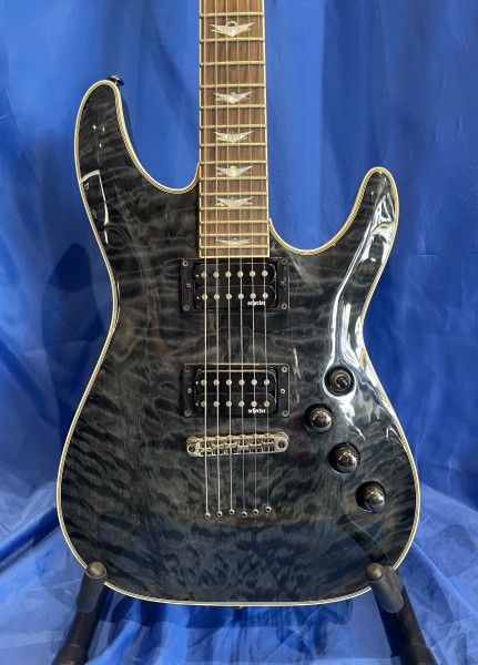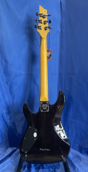 Équipée de micros double bobinage Schecter Diamond Plus, elle délivre des sons saturés précis et articulés. Le chevalet fixe à cordes traversantes et les mécaniques bain d’huile assurent une excellente tenue d’accord, tandis que l’électronique (2 volumes, tonalité push-pull, sélecteur 3 positions) permet un contrôle simple et efficace du son. La finition See-Thru Black met en valeur l’esthétique moderne de ce modèle agressif et polyvalent.