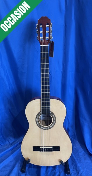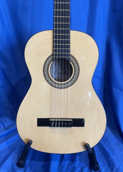 Santos y Mayor GSM5 3/4 est une guitare classique d’occasion en bon état, conçue pour les jeunes guitaristes ou les musiciens recherchant un format plus compact. Sa caisse en tilleul laminé (table, fond et éclisses) offre une réponse douce et équilibrée, adaptée à l’apprentissage, avec une sonorité claire et accessible pour travailler les bases en toute simplicité.