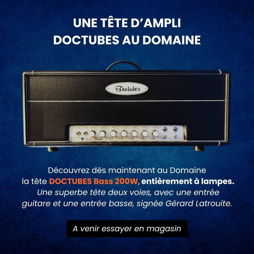 Discover the all-tube DOCTUBES Bass 200W head now at Domaine. Designed by Gérard Latrouite, this two-way head offers a guitar input and a bass input, ideal for musicians looking for versatility and power.