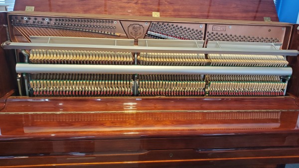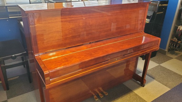 BORD 121 de 1995. Fabrication Coréenne (usine Young Chang) en acajou (Bubinga) brillant . Première main, régulièrement entretenu, c'est un excellent piano de milieu de gamme. La mécanique est comme neuve, l'ensemble est dans un bel état de fraicheur. Préparé et livré avec sa garantie de 5 ans.